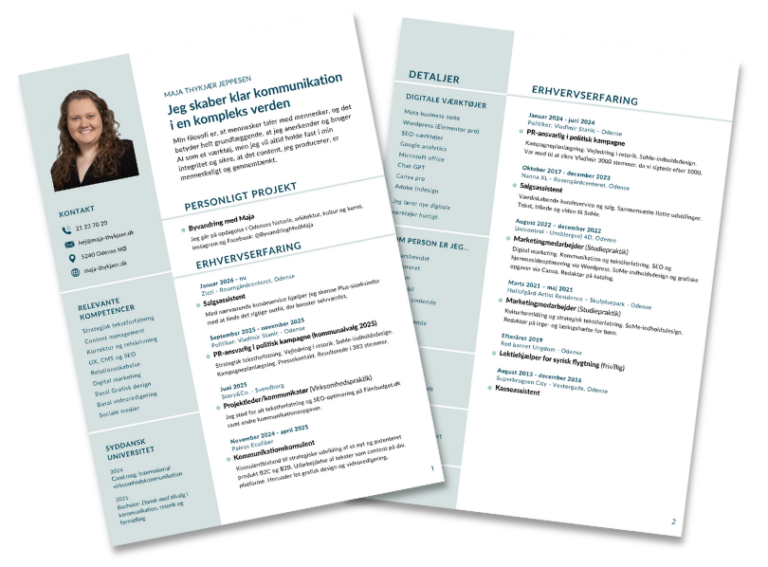 Digital marketing. Kommunikation og tekstforfatning. SEO og hjemmesideoptimering via WordPress. SoMe-indholdsdesign og grafiske opgaver via Canva.
